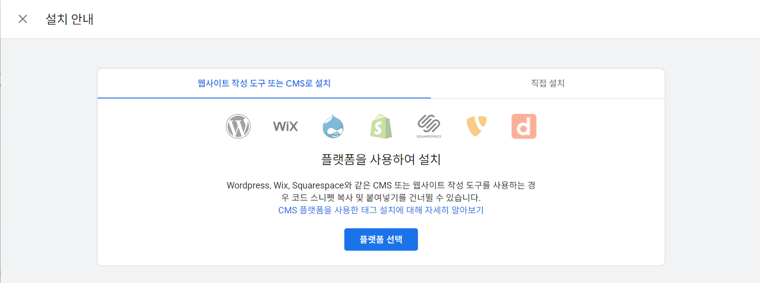상단에 '태그 안내 보기' 버튼을 클릭하면 플랫폼을 통해 설치가 가능하지만 저는 직접 설치하였습니다.